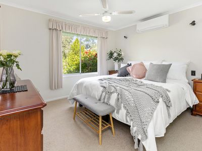 Located amongst treed surrounds with the hills of Arthurs Seat as its backdrop, this immaculate, light and airy three bedroom family home is nothing other than an absolute pleasure to inspect. The moment you step foot through the gates of this amazing home you’ll realise there is not a cent to spend anywhere! Light filling living, updated kitchen and adjoining meals area are all kept comfy year round with evaporative cooling and split system reverse cycle air conditioning throughout. Each of the three bedrooms share in the family bathroom, full laundry and separate toilet. Relax and unwind in the heated spa, entertain year round under the impressive outdoor area, bask in the summer sun in the picture perfect backyard or simply tinker the afternoon away in the double garage with added space for the workshop. Storage is of zero concern here with triple carport and huge undercover space with extra height for a full size caravan or boat. Complimented by extensive paving, a unique selection of manicured plant life, treed reserve at the rear, all within an easy stroll to tennis courts, local shopping, walking trails and stunning golfing greens.