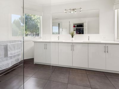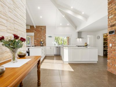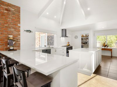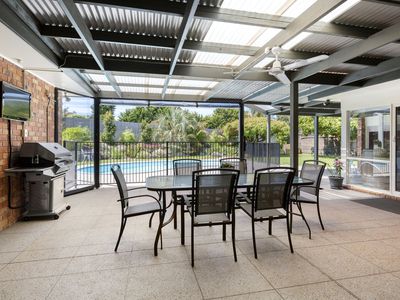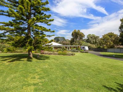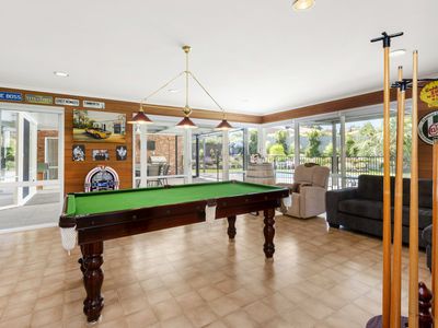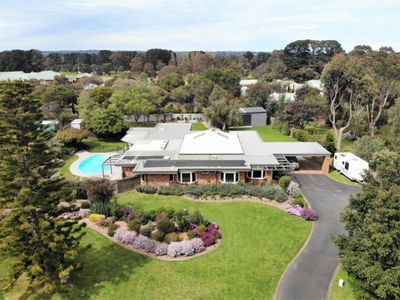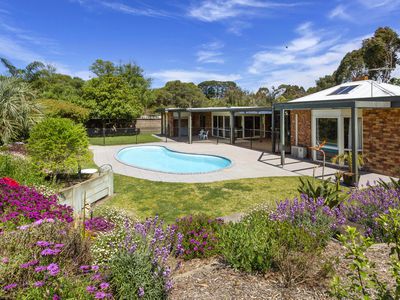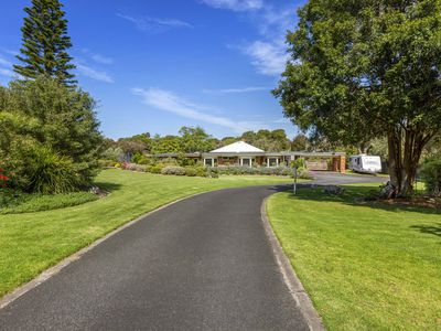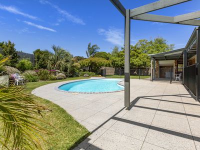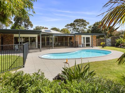 Exquisite family living delivered in immaculate style as an abundance of space and total harmony delivers every aspect of that highly sought, Peninsula lifestyle. Situated on a pristine, landscaped one acre allotment backing directly on to the Country Club Golf Course while found in the prestigious Lockhart Drive Estate. Outstanding luxury is afforded as modern tones combine with architectural design as an integration of both indoor and outdoor living allow for an entertainers delight. Taking in scenic, landscaped garden views and sparkling pool vistas, an intelligent floor plan of flowing open plan living is sure to provide the new owner superb everyday living. Picturesque solar heated, in ground swimming pool is found just a dive from the generous alfresco area complete with full toilet facilities. Immaculately presented, under soaring ceilings is a fully equipped gourmet kitchen enjoying island bench, stainless steel appliances and walk in pantry. The sweeping open plan living and extra games room with wet bar and spa room makes for an entertainers delight as a stunning stone fireplace, air conditioning and ducted heating ensure your year round comfort. The impressive master suite enjoys ensuite, walk in robe and additional storage space, two additional generous double bedrooms share in the family bathroom, as a fourth bedroom also doubles as a great study or home office with a pretty garden view. All complimented by an oversized, drive through carport, second single lock up garage or workshop, bore water, irrigation, extensive 14.4m x 7.5m x 3.6m shed, sealed driveway, ample space for boats and caravans, remote front gates and gated pedestrian or cart access to the Club House at the rear. A truly wonderful home found in a highly sought location well away from all the hustle and bustle while just minutes to shops, schools and easy freeway access.