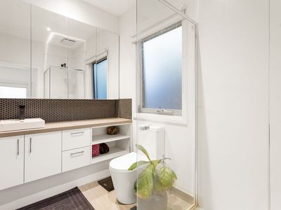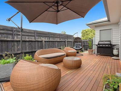 Located only a few minutes’ walk from the water’s edge and the heart beat of the Rosebud shopping strip this immaculate villa offers convenience and style in abundance.