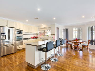 Situated in one of Rosebud's more popular treed settings, this superb four bedroom plus study home spills over three generous living zones offering every essential for spacious, zoned family living. Terrific presentation both inside and out combines with a warm homely feel as an impressive list of today's creature comforts are sure to make day to day family an absolute joy. Entertain year round as the well fitted central kitchen, family living area and rumpus room adjoin an extensive undercover outdoor area to deliver the perfect platform to host friends and family alike. Accommodation is in grand supply as the master bedroom enjoys both ensuite and walk in robe, as three double robed bedrooms and additional study or potential fifth bedroom all share in the family bathroom, full laundry and separate toilet. A formal lounge and dining room deliver an abundance of living space, as ducted reverse cycle air conditioning, feature gas fire and sunny northerly aspect guarantee your absolute comfort. Set on an attractive, landscaped 829m2 allotment complete with double remote drive through garage, easily accessing an additional carport and extensive new colour bond workshop. You’ll enjoy a 5kw solar power system, water tanks along with impeccable presentation make for an absolute must to add to your inspection list!