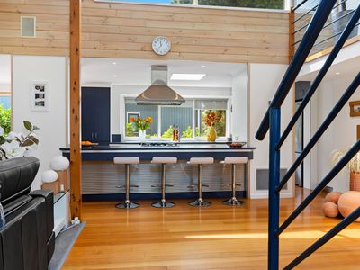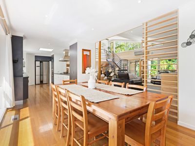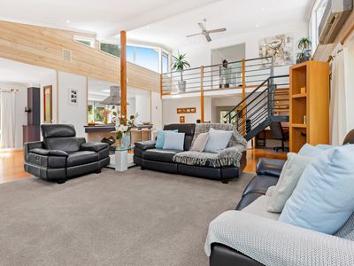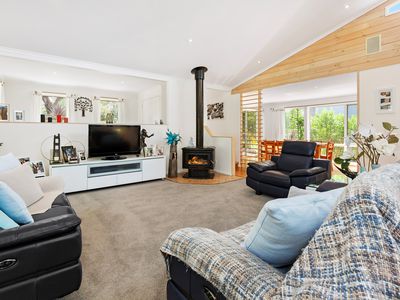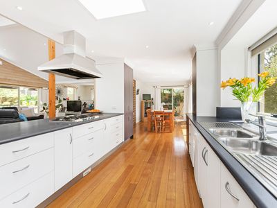 Exquisite family living provided by an exceptional, custom design to deliver an abundance of natural light and flowing open plan living for harmonious, tranquil living. Situated amidst the treed hills of Rosebud South, terrific indoor and outdoor living combine with scenic rural and tree top views and gorgeous gardens to form an amazing backdrop for picturesque day to day living. An intelligent floor plan features sweeping open plan living, soaring ceilings and highlight windows allowing natural light to spill over every level of this unique home. Immaculately presented both inside and out, a fully equipped gourmet kitchen enjoys extensive storage and bench space. The adjoining meals area complements the generous open plan living zone, as the formal entry and lounge offer a little added space. An entertainers paradise, the huge alfresco area provides the ideal platform for absolute year round entertaining. Perched on the upper level at the top of a feature staircase is the spacious master bedroom with private balcony, walk in robe and full ensuite overlooking rural surrounds and with tree tops views. Accommodation is well catered for by three additional double robed bedrooms, family bathroom, well fitted laundry and study nook. Your absolute comfort is assured by split system airconditioning, central gas heating and glorious wood combustion heater. The journey outdoors uncovers a huge seven squares of garage and workshop complete with remote roller door access, added carport for the boat or trailer, circular driveway, extensive external paving and decking, rain water tanks and pretty, well established gardens. A truly impressive feature filled home found in a highly sought treed setting well away from all the hustle and bustle. While remaining just minutes to shops and schools with easy freeway access, this stunning home is simply unlike any other!