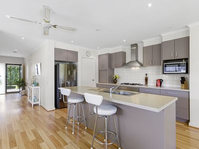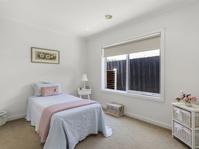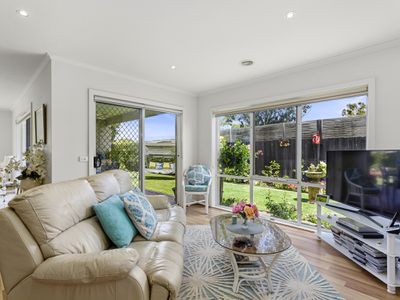 Immaculately presented through out this stunning, light and airy three bedroom home is just an absolute pleasure to inspect. The moment you step foot through the front gate of this amazing home you’re greeted by a warm and welcoming feel. Light filled open plan living, well fitted kitchen and adjoining meals area all enjoy superb vistas of the picturesque backyard. Split system air conditioning and gas ducted heating ensure total year round comfort. In addition, a second sitting room or study offers a little added space, as the master bedroom features both walk in robe and ensuite, while the two other double bedrooms share in the family bathroom and full laundry. Relax outdoors under the alfresco area or bask in the sun amidst the picture perfect backyard. Tinker the afternoon away in the double drive through garage with internal access, potter in the amazing cottage gardens or wander down to Port Phillip Plaza and sandy shores. You’ll have the local bus right by your front door with all the convenience of schools, shopping and transport within easy reach to make for one home that is certain to impress in more ways than one. Inspect easily by appointment.