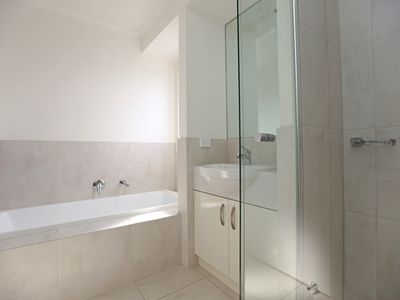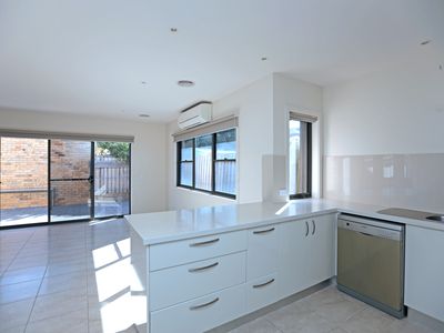 Perfectly positioned and available from approximately 16th March, is this easy to care for three bedroom home with double garage. Featuring an open plan lounge and dining area, flowing through to a modern kitchen with granite bench tops, gas cooking and dishwasher. Dining area opens onto a courtyard area; perfect for a bbq or just to relax. Also downstairs is the laundry, toilet for guests and internal access from the kitchen to the double remote garage; no getting wet on a rainy day, plus nice and secure. Upstairs is the main bedroom with built in robes and good size ensuite, second and third bedroom with built in robes and ceiling fans, plus main bathroom with bath and shower and separate toilet. Ducted heating throughout plus split system air conditioning downstairs.